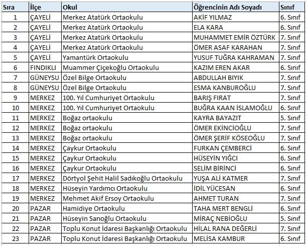 Sıralama puana göre değil, ilçe ve okul isimlerine göre yapılmıştır.
